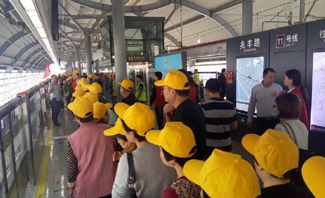 2015年10月18日上午9時許,由昆山市文明辦、市網絡傳媒中心聯合主辦的第三屆“我陪老爸老媽逛昆山”活動,參加本次活動的老年人及他們的子女共計130人,他們通過乘坐我們昆山花橋段的地鐵的方式來感受我們近年來昆山交通事業的發展以及花橋國際商務城地區繁榮蓬勃的經濟發展形勢。