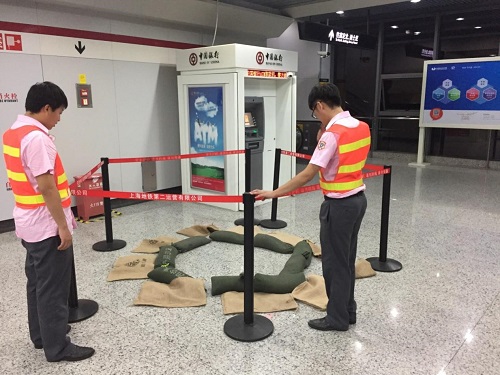 演練主要模擬在車站運營期間強降雨、站廳出現不同程度漏水的情況下,車站啟動防汛防臺預案的情況。車站工作人員在發現情況后,第一時間利用沙袋、麻袋、刮水板等應急物資對站廳漏水點進行防護,阻止其蔓延。同時密切關注客流情況,注意客流動態,做好聚集在車站及出入口避雨乘客的引導工作。