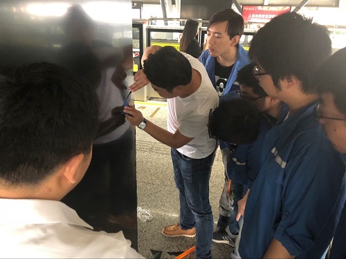 此次培訓采用了理論與實際相結合的方式,增強了各參訓人員在垂梯表面黑色保護膜維護保養、液體表面張力與吸附效益的技能。在實操培訓結束后,技術員們還以培訓考試的方式鞏固學習成果。