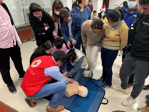 為進(jìn)一步提高車站員工的安全防范意識和自救互救能力,有效應(yīng)對工作中遇到的突發(fā)情況。11月9日下午,軌道公司邀請紅十字會專業(yè)救護(hù)講師開展一線員工現(xiàn)場救護(hù)培訓(xùn)合格證取證、復(fù)證工作。